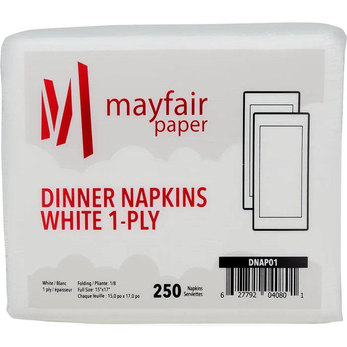 Mayfair - 1 Ply Dinner Napkins 1/8 Fold - White - DNAP01 - Case [12x250 ct]
