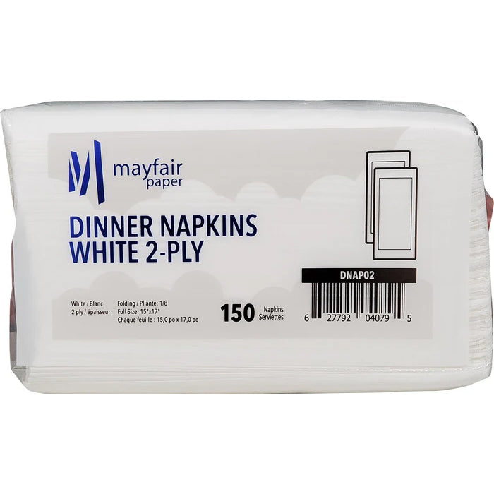 Mayfair - 2 Ply Dinner Napkins 1/8 Fold - White DNAP02 - Case [20x150 ct]